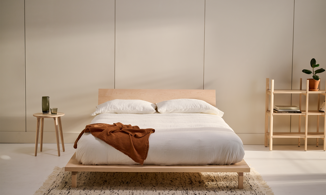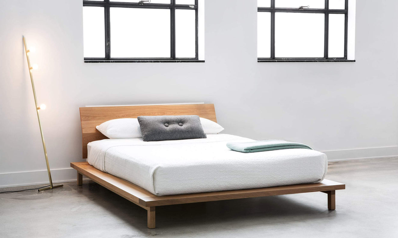 The B101 platform bed is one of our original creations. The low profile frame and generous base provide a sleek modern design, while the angled headboard offers extra comfort for reading in bed.