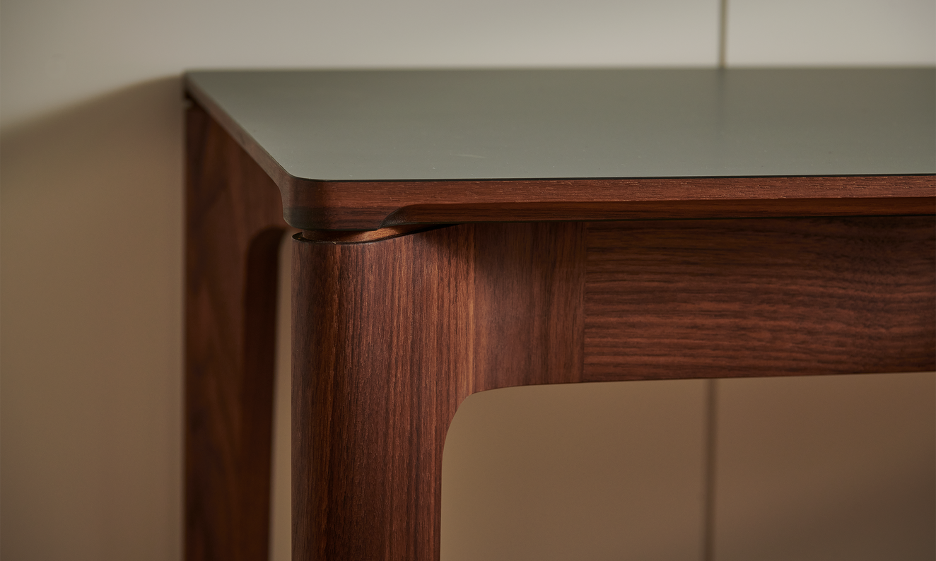 The T408 writing desk is elegantly sculpted with a practical pencil drawer tucked within the inset apron. The desktop is available in solid wood or Fenix NTM, a highly resistant acrylic resin. Multiple Fenix colours are available and custom sizes are available.