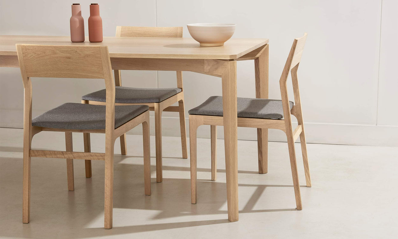The T110 is a solid wood table with angular legs and a recessed apron allowing for greater customizability. This table can easily be made up to 10ft in length, which comfortably seats 12 - perfect for entertaining.