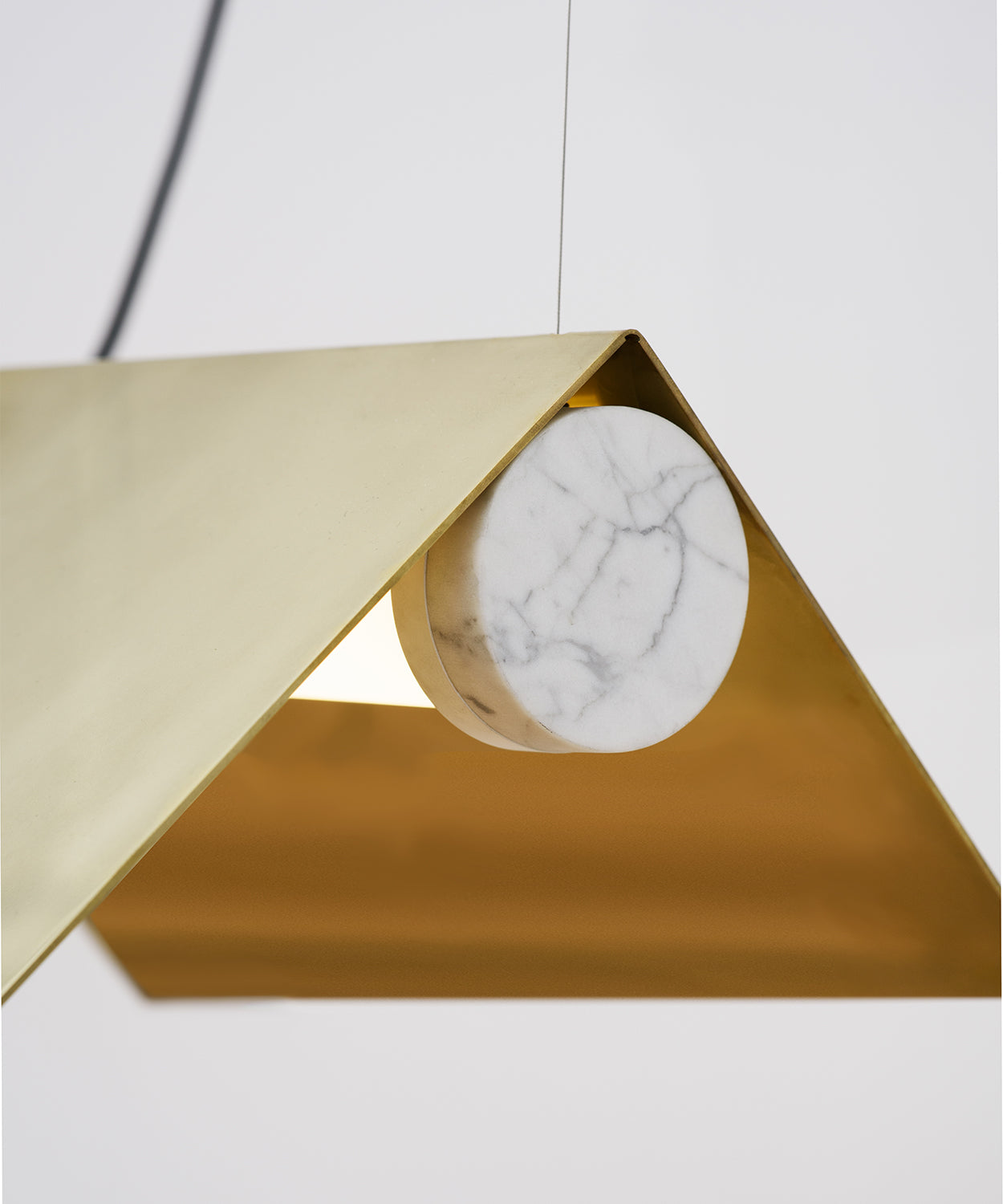 The Clark Collection pushes the limits of form without sacrificing functionality. Cut and bent metal create shades that both block and reflect the lamp’s light source, casting an even wash of light on any surface. Marble is used not only to anchor the lamps, but also to provide a contemporary touch to its surrounding environment. The rich materials and subtle used of angles in these lamps seamlessly blend elegance and playfulness.