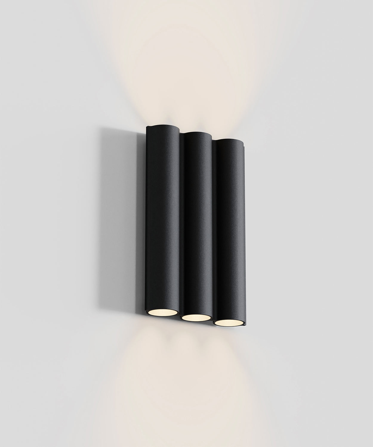 Made using custom aluminium extrusions, the modular uplight-downlight creates a theatrical yet sleek composition.
