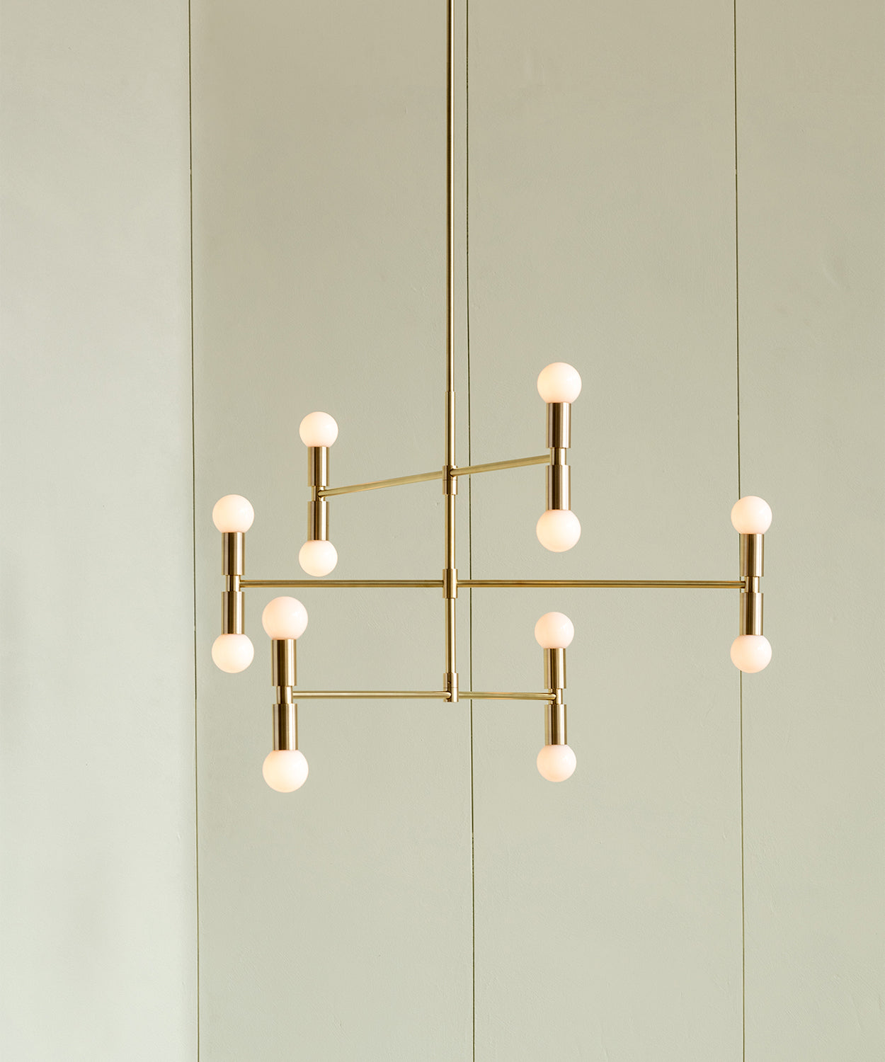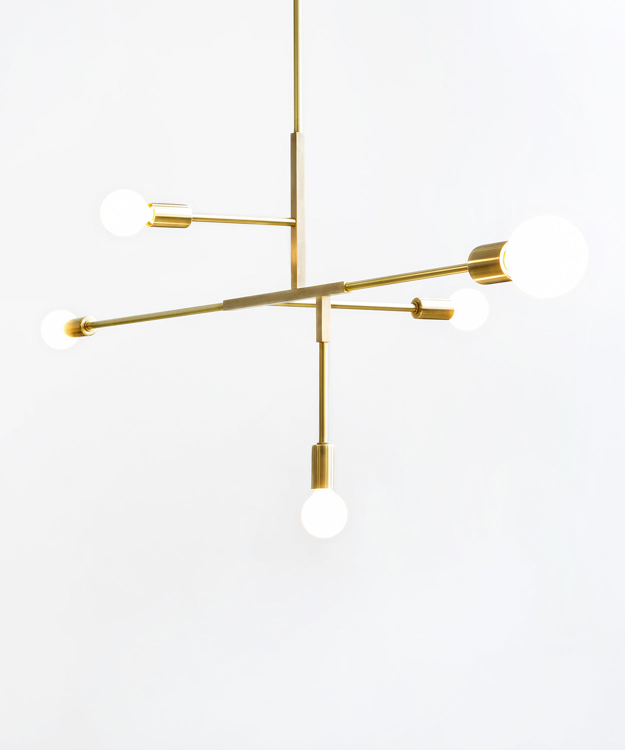 The Dot Collection combines the directness of exposed, spherical bulbs with the rich materiality of brass. Focused, geometric compositions contain these two features, balancing line, surface, and luminous points. The result is a collection of lamps based in the reflectivity of brass - lamps that are both atmospheric and firm.
