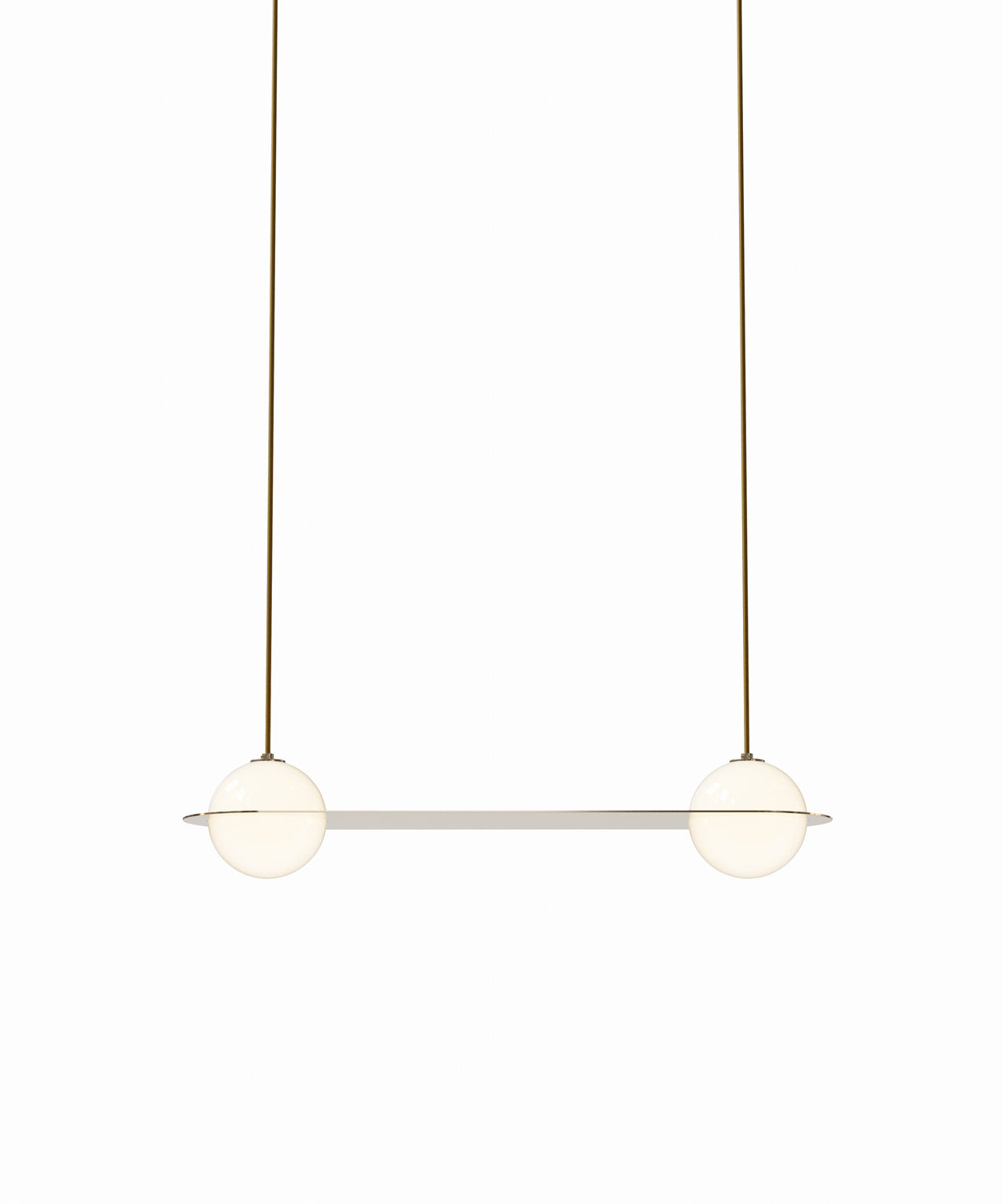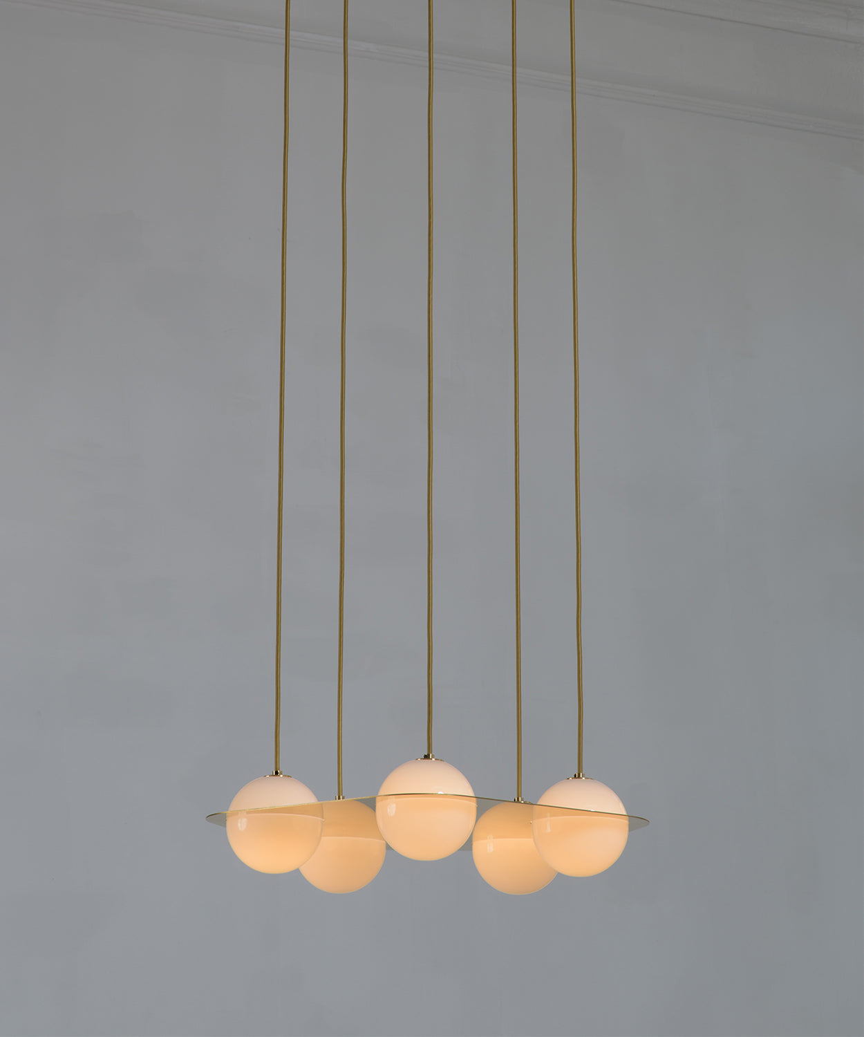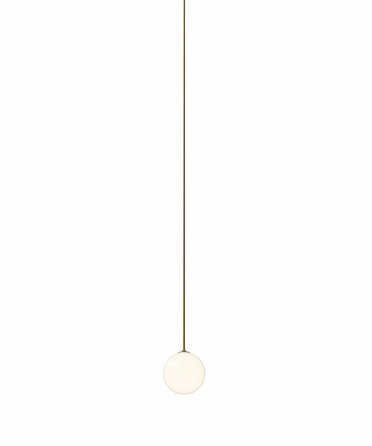 The Laurent Collection distills the milk globe to its essential relationship between circle and sphere. A series of thin forms compliment the Laurent globes—forms that carve through space, moving between line, surface, and volume. These forms combine in endless patterns, making it possible for an installation of Laurent lamps to inhabit any space with subtlety and quiet strength.