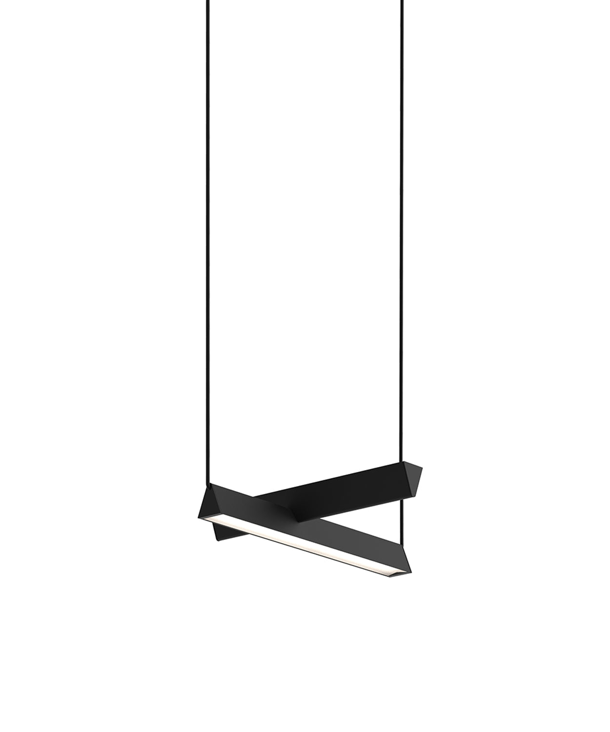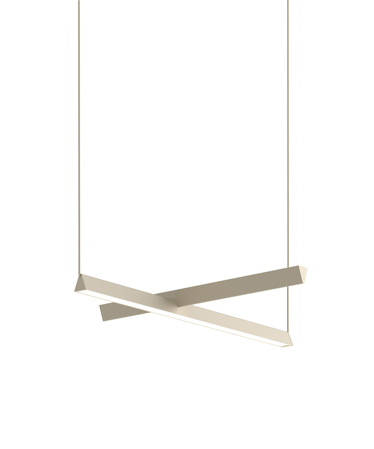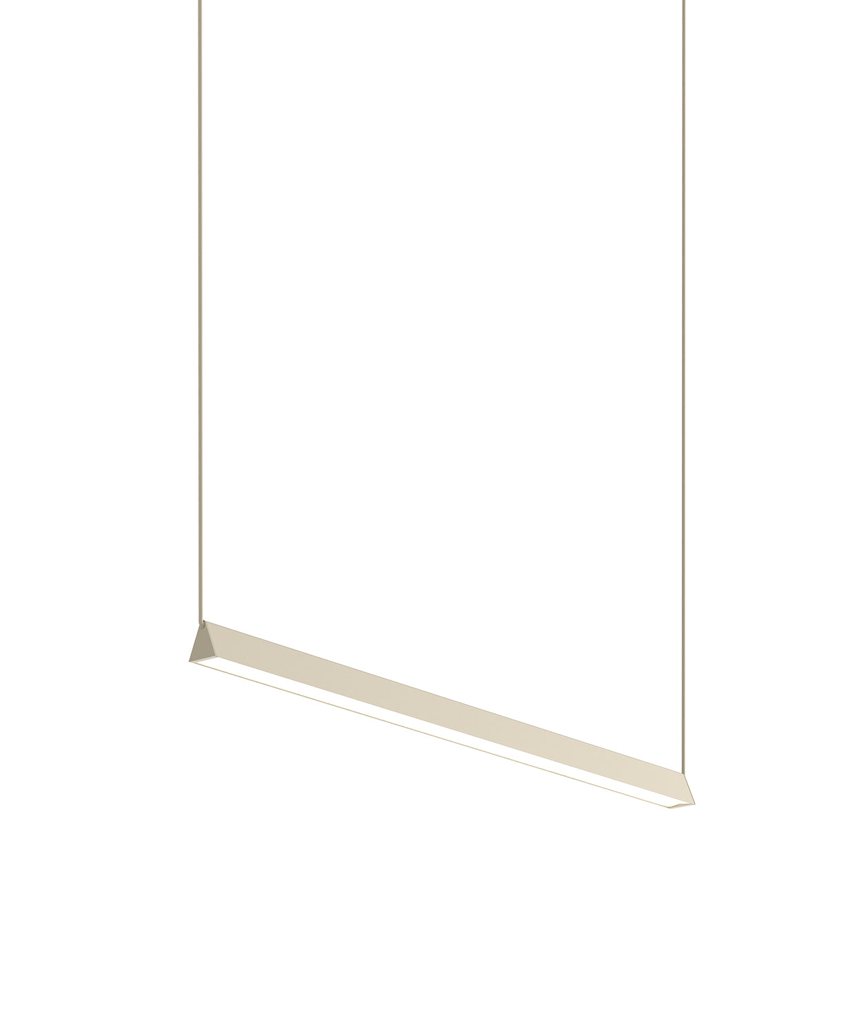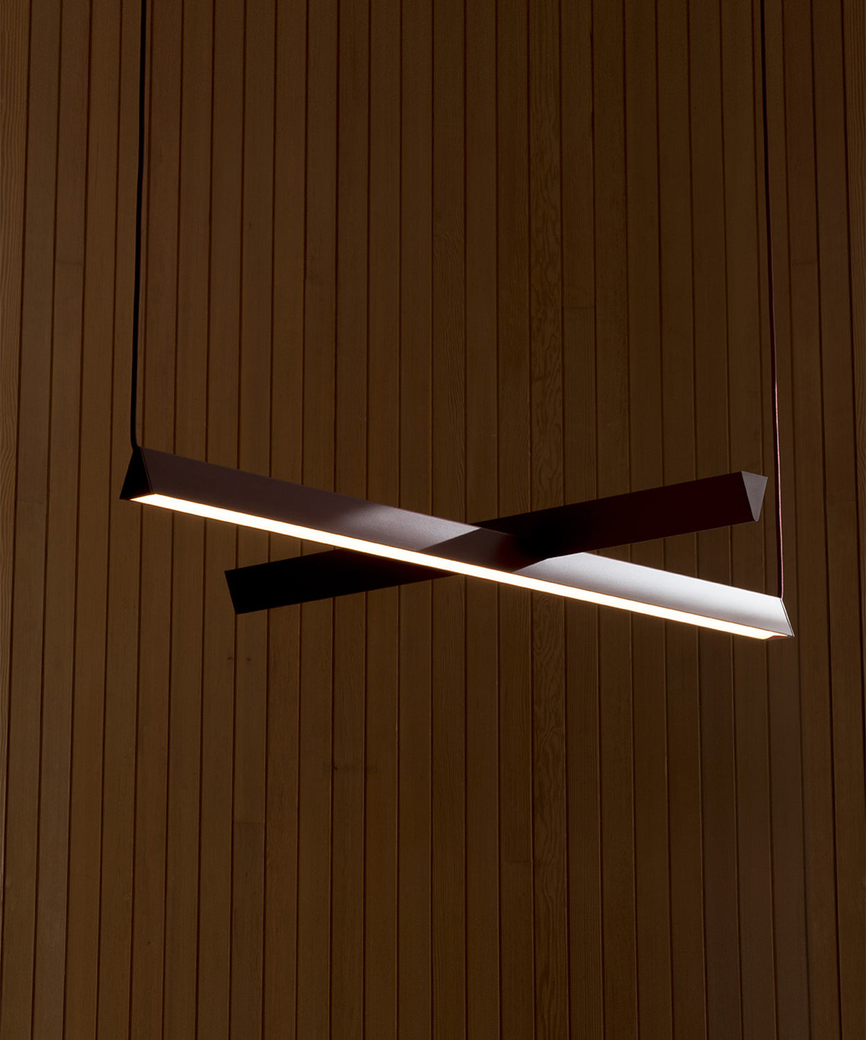 A collaboration between Lambert & Fils and Guillaume Sasseville, Mile offers a variation on the linear suspension, pared down to its simplest, asymmetrical expression, with two lines floating in surprising equilibrium. Direct and indirect light are separated by a 90° pivot, thus marking out space with light. A play on contrasts, Mile is part art installation and part utilitarian light. The use of linear LED technology and the wires clamped into the structure add to the weightless, almost levitating feel of the lamp.