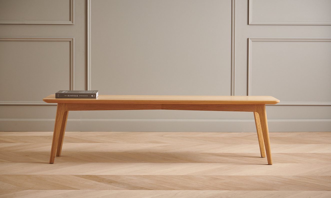 The C110 is a timeless bench with soft, rounded edges and curved legs. A versatile piece, the C110 is equally suited at the table in your entranceway or at the foot of your bed.