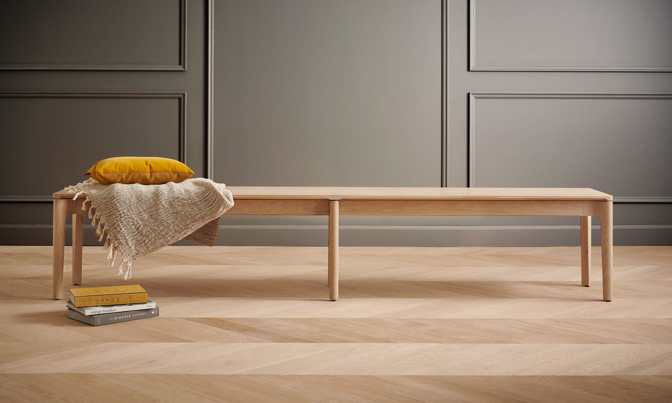 The C112 is a beautifully crafted contemporary bench with subtle cove detail on all four sides and an inset apron that curves into the legs—the perfect addition to your dining room table or mudroom entranceway.