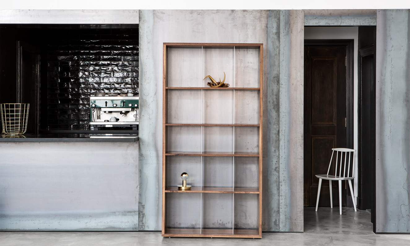 The S304T is a narrow open shelving solution. The structured wood frame combines solid wood shelves and lacquered metal dividers, providing balance and refinement—a versatile piece used as a display unit or bookcase. The unit is also available in our original standard size and a low version.