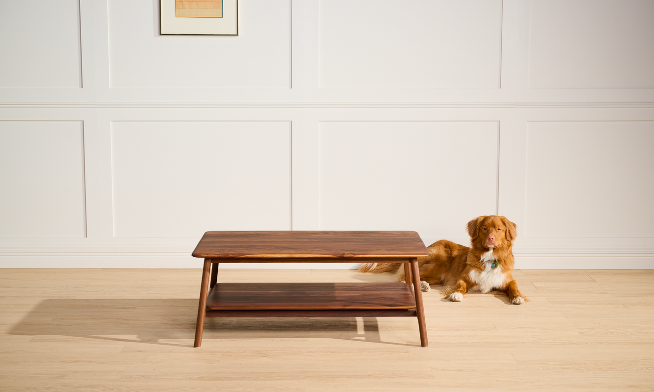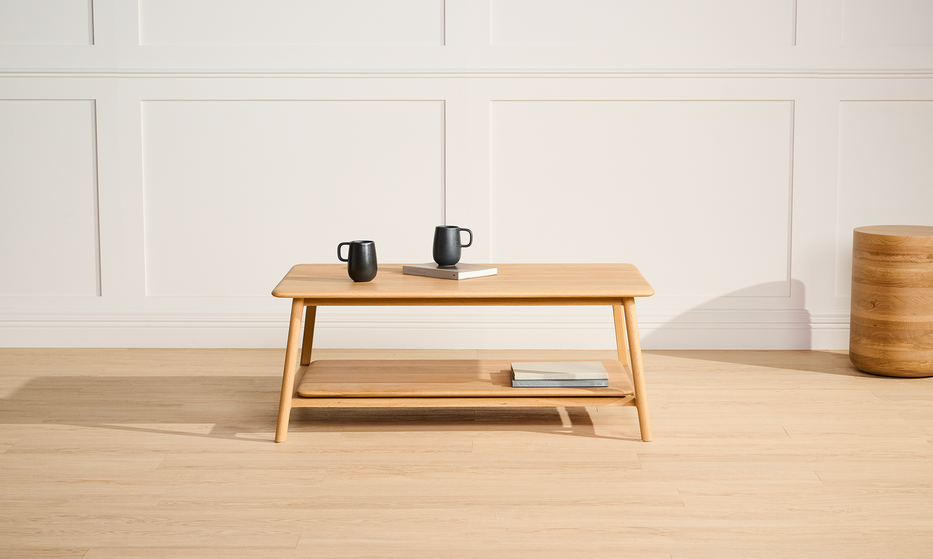 Thoughtfully crafted, the T214 is a solid wood coffee table featuring a practical shelf at the base. The assembly and skilled joinery showcase the craftsmanship of its design.